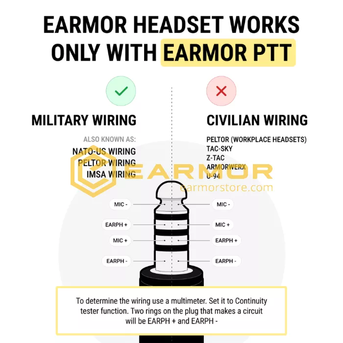 ⚠️ WARNING: Military Connector is not suitable for Element or Z-Tactical PTTs. Please use Earmor PTTs or TCI/Nexus PTTs.